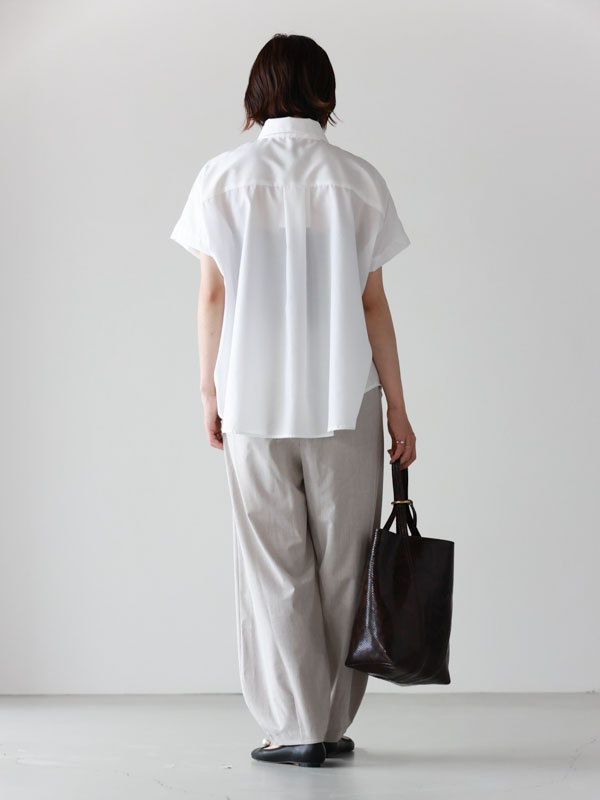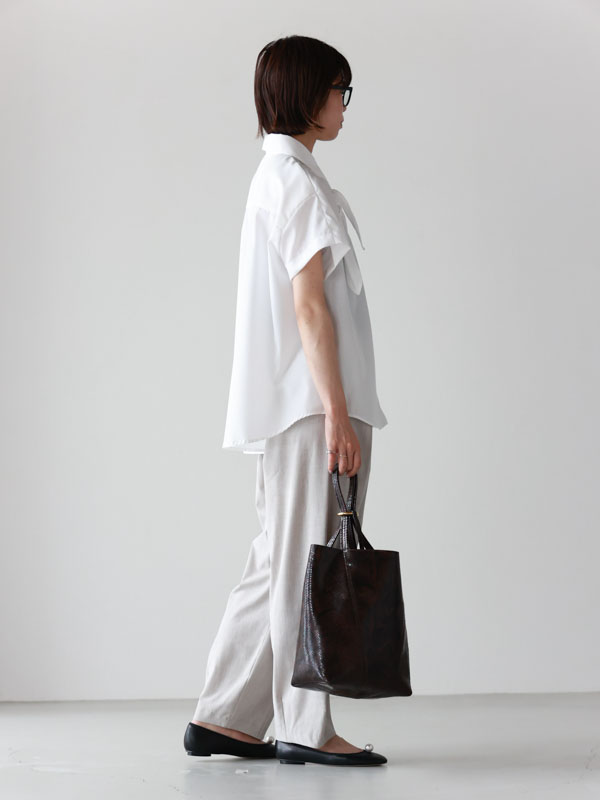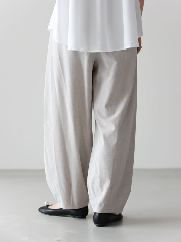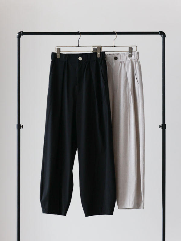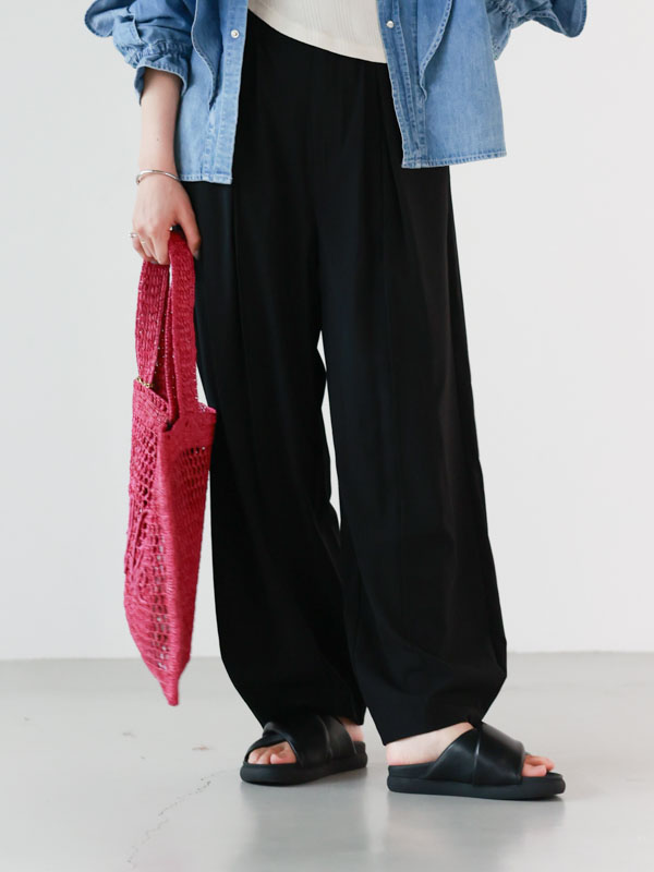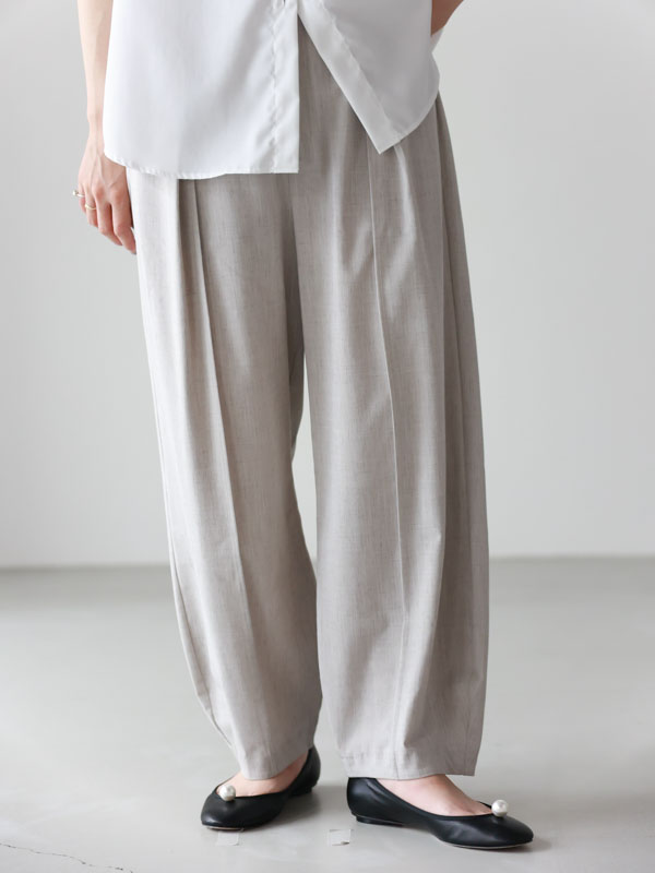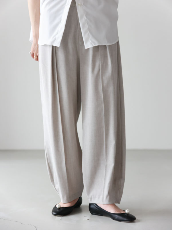 ふんわりとした立体的なシルエットで、脚のラインをきれいに見せつつも、程よくカジュアルダウンできる絶妙なデザイン。