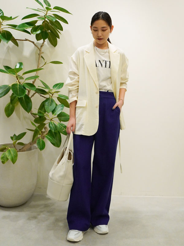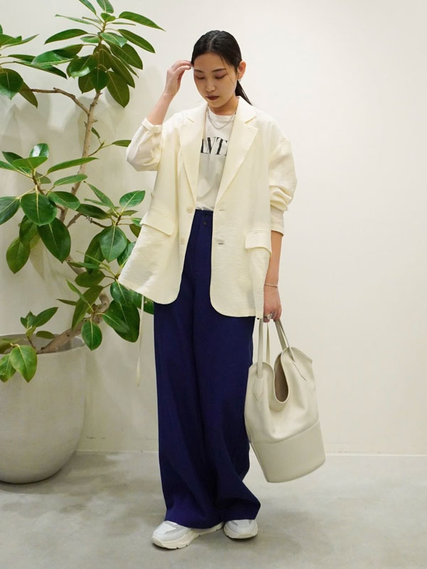 シアージャケットに合わせてトレンドライクなコーディネートです。太すぎないシルエットなのでビッグシルエットのジャケットにも丁度良いバランスで合わせていただけます。