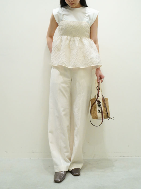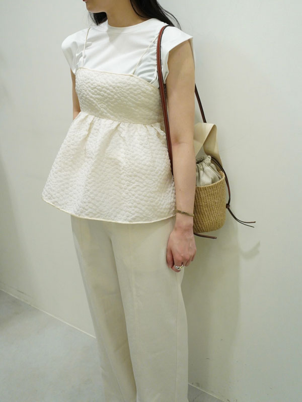 キャミソールのAラインシルエットと、パンツの落ち感が絶妙なバランスでスッキリ見えてお気に入りです◎