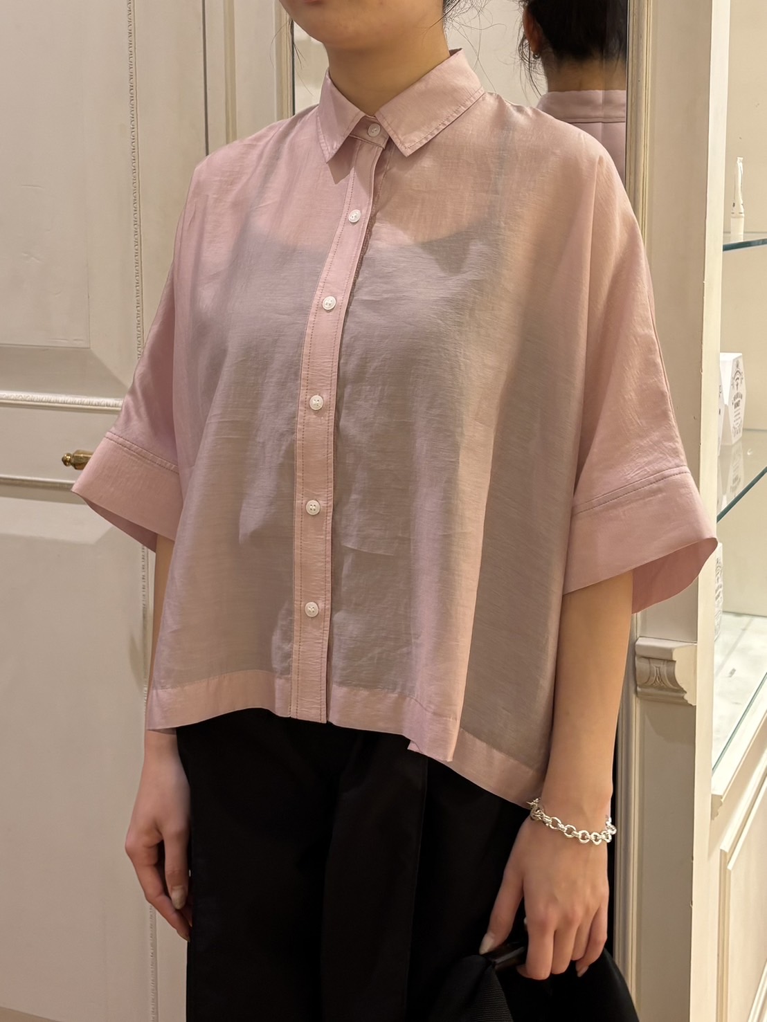 着用しているシャツは、じめっとした梅雨時期には嬉しいシアー素材で、軽くて着心地も抜群です。