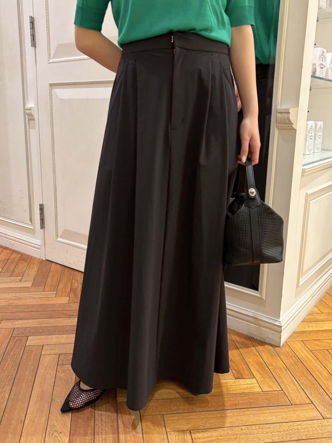 合わせているスカートにも注目をしてほしいのですが、撥水性とウォッシャブルの機能性が兼ね備えられているんです!