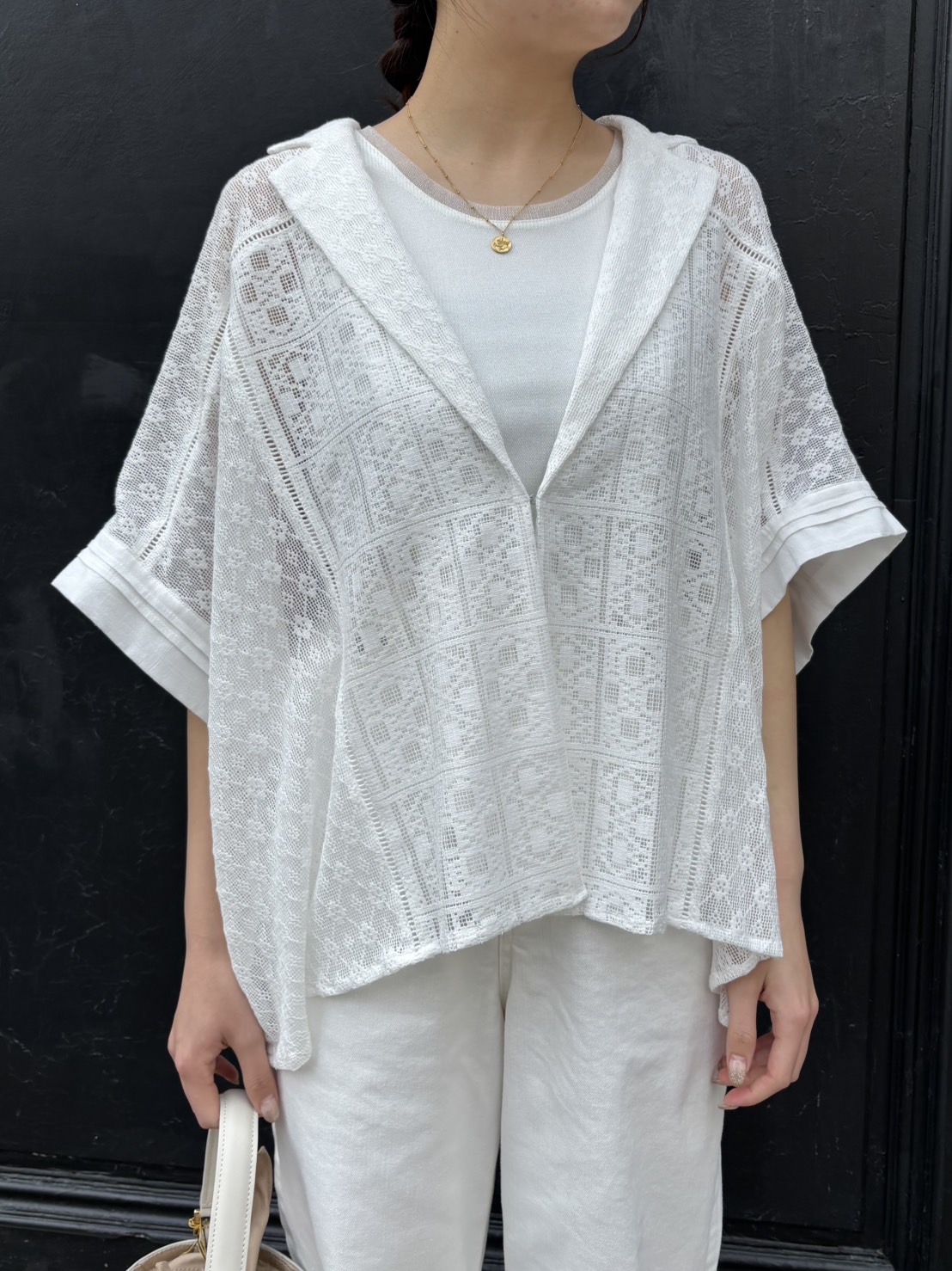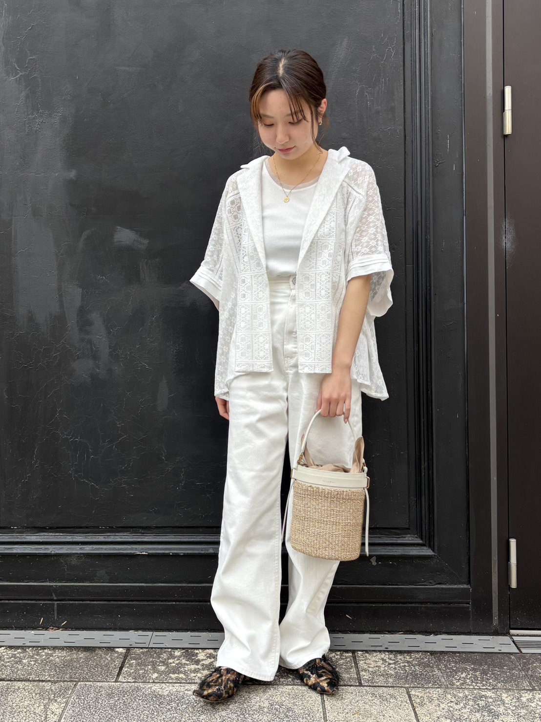 上に合わせたジャケットは、様々な柄を組み合わせたデザインになっていて、レースの甘さは抑えつつ華やかな印象にしてくれます!そしてパンツにもスカートにも合わせやすい丈感なので、この時期の羽織ものとして大活躍してくれること間違いなしです!