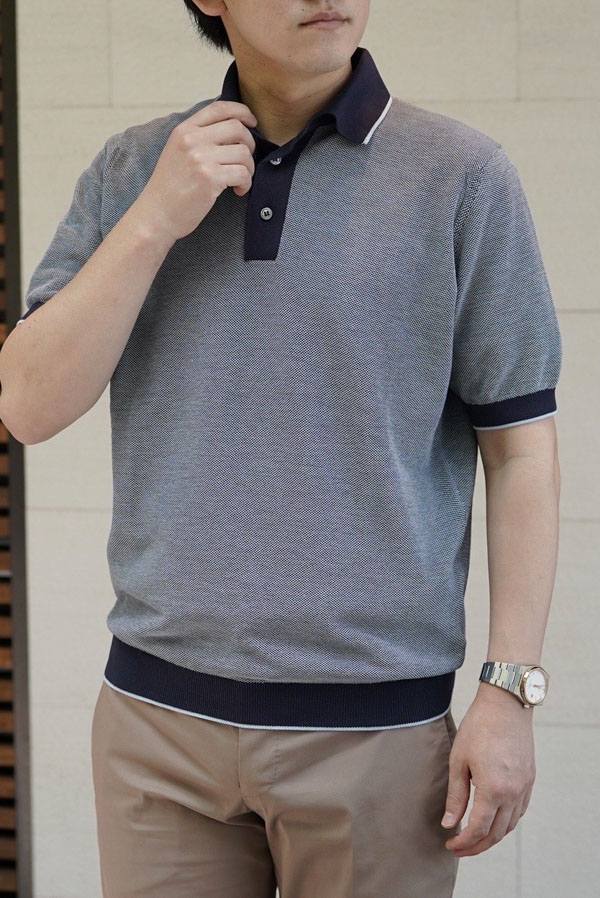 最後は昨今のオフィスカジュアルにも使っていただけるニットポロのご紹介。