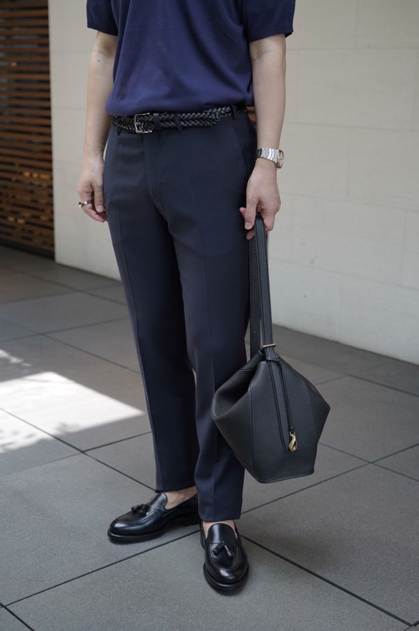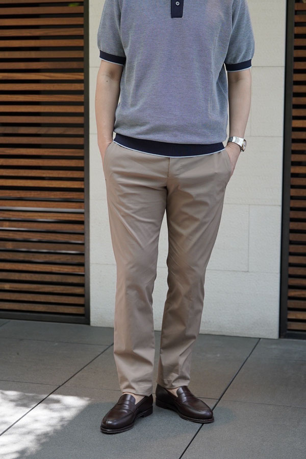 トップスが半袖ですので、パンツはショートパンツではなくスラックスを使用。