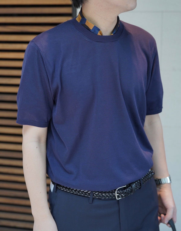 オンオフ両方で使えるアイテムですので、いきなりサマーニットは着こなしがどう合わせたら良いか難しい、という方にはこちらがオススメです。