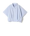 サックスブルーが爽やかなバルーンショートシャツは、今季トレンドのアイウェアと合わせてマニッシュな印象に仕上げました。