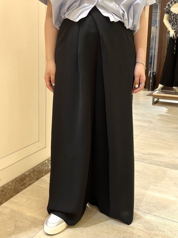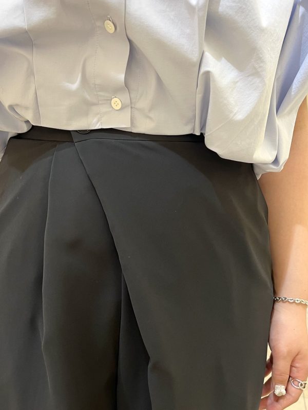 ウエストデザインから生まれるドレープが素敵なこちらのパンツは、ショート丈トップスと合わせると魅力が最大限引き出されます。