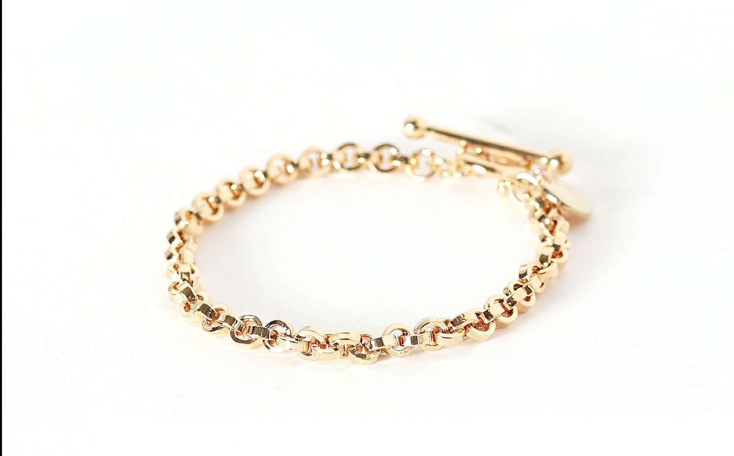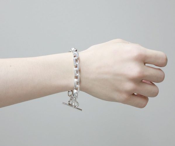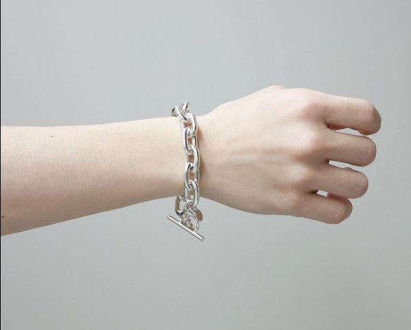 シンプルでありながらも程よい存在感を持つチェーンデザインが、手元でさりげなく輝き、スタイリングのアクセントとして活躍します。