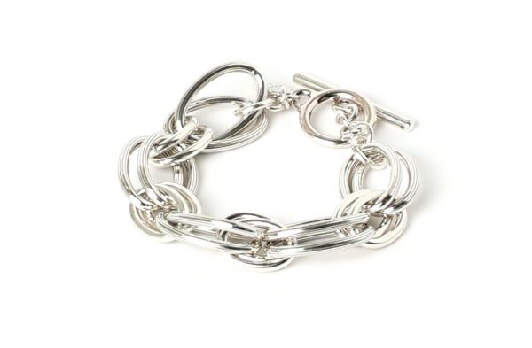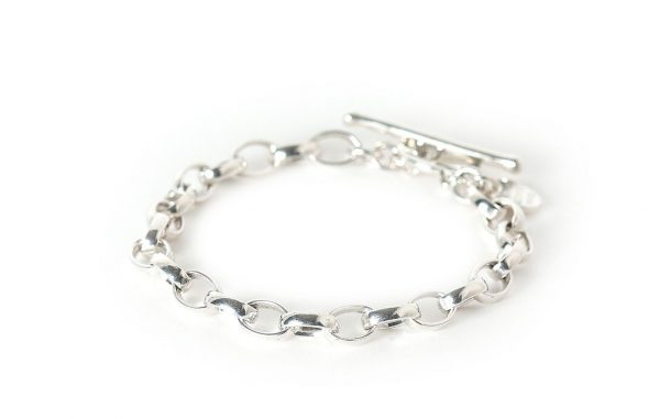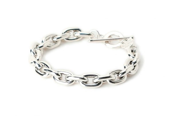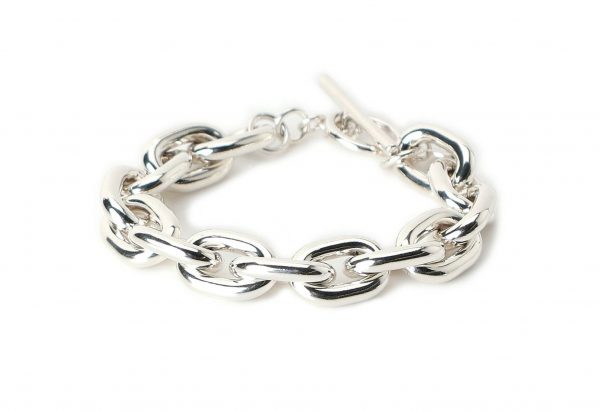 ツヤ感のあるシルバーで仕上げた上品なチェーンブレスレット。