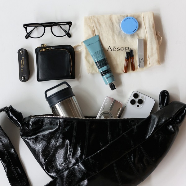 普段バッグに入れている、お財布、携帯、小さめのポーチ、水筒、カメラなどはしっかり入る収納力。心配性なので、少しでも必要だなと思ったら持ち歩きたいタイプです。中でも手放せないのが、パリゴでも取り扱いのあるAesop(イソップ)のハンドクリーム。ウッディな深みと、ほんのりスパイシーな香りが絶妙で、静かな森の中にいるような落ち着きをもたらしてくれます。保湿はもちろん、気分をリセットしたい時にもぴったりで、何度もリピートしてしまうアイテムです。