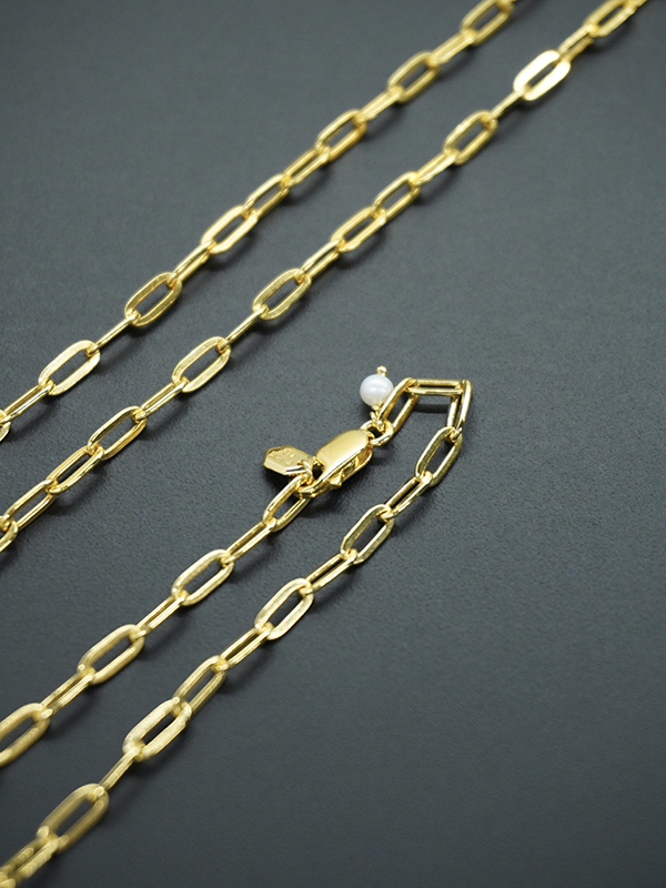 「Gemma Necklace」と「 Gemma bracelet」は同じシリーズのもので、オーバル型のチェーンで無骨になり過ぎずどこか品を感じる曲線が魅力です。