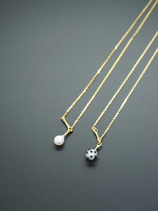 「Bane Necklace」はシンプルなチェーンにパールのモチーフが付いているネックレス。トップのデザインが特徴的ですが、飾り過ぎない上品なデザインで色々な場面で活躍間違いなしです。
