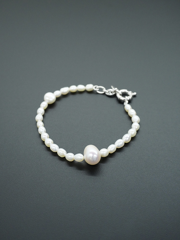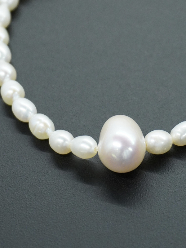 「Martini Bracelet (S/M) Gold HP」は一周パールのブレスレットで、2か所に大きさの違う大粒のバロックパールがあしらわれた遊び心のあるデザインです。