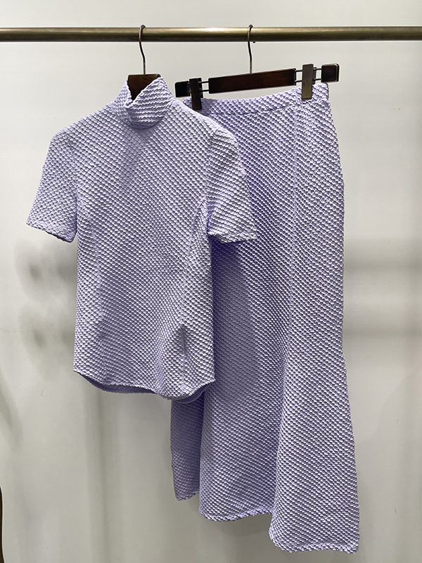 淡いパープルをブラックで引き締めた甘すぎないスタイリングに。