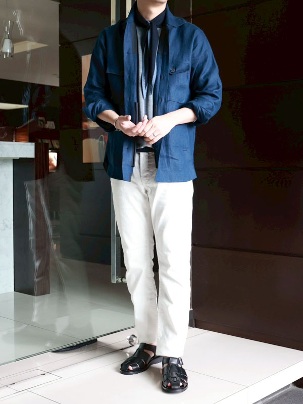 鮮やかなブルーが綺麗なリネンシャツジャケットは、飽きがきにくい定番のデザインで毎年活躍してくそうです。