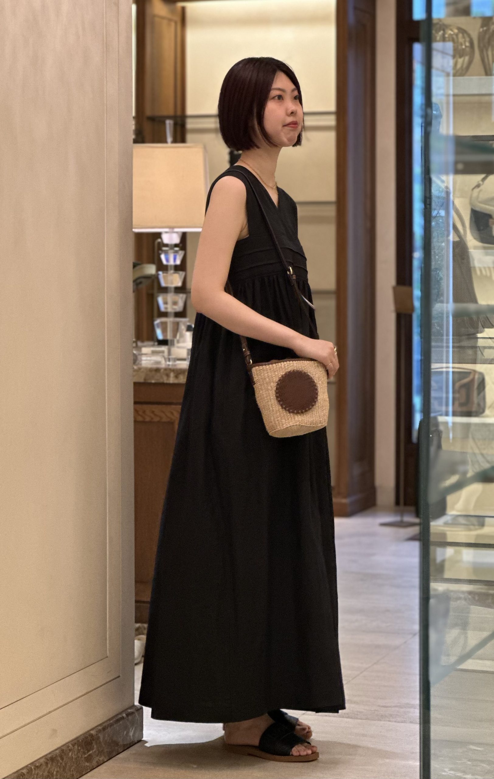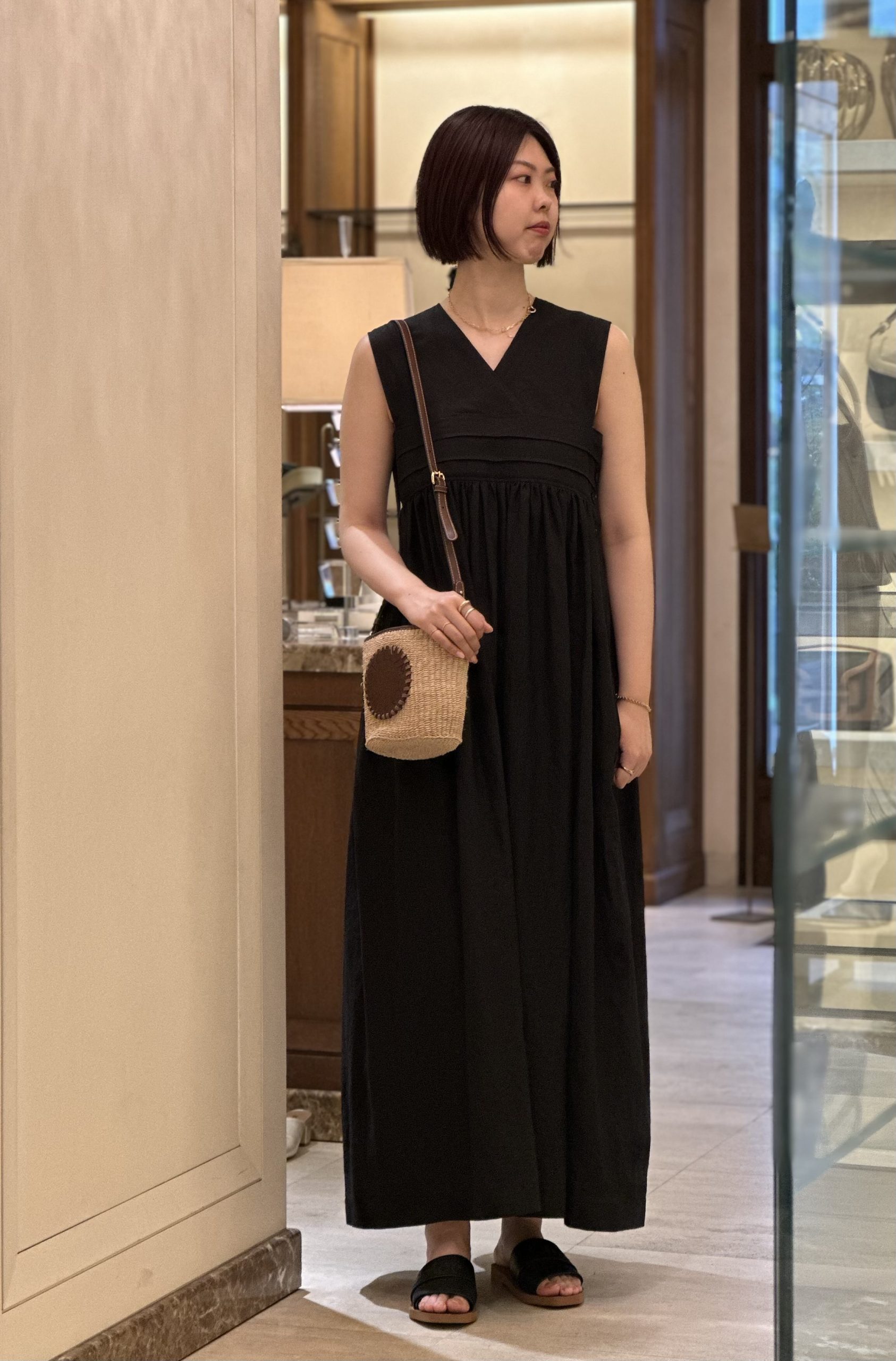 上質なリネン素材を贅沢に使ったマキシ丈ワンピース。ナチュラルな落ち感と、程よいゆとりのあるシルエットが特徴です。洗練されたミニマルデザインで、大人のリゾートスタイルにもぴったり。胸周りのフィット感は大人の方でも安心して1枚でお召し頂けます。