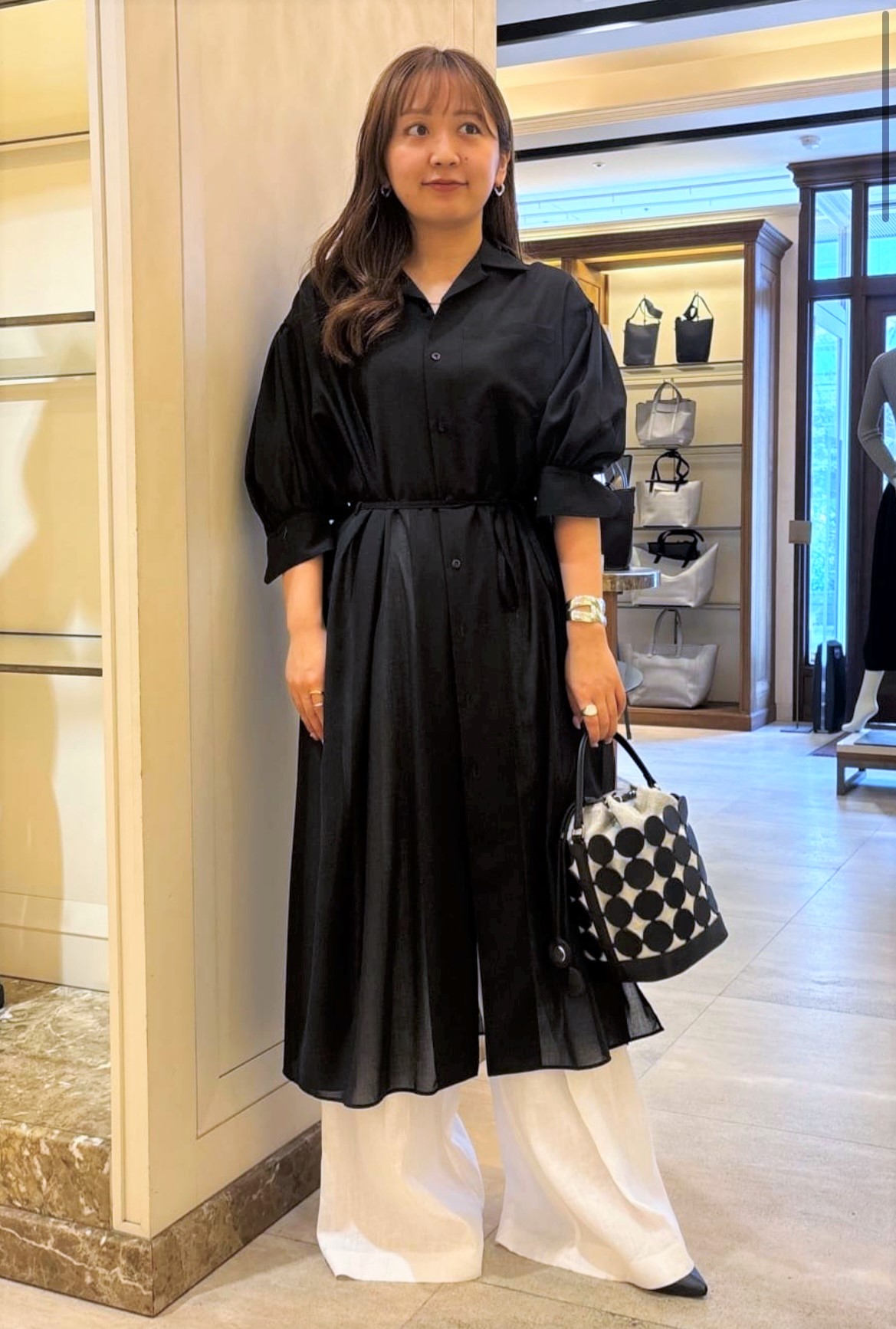 ベーシックなブラックシャツと合わせるだけで様になりますよね。ボリュームトップスをインして、メリハリのあるスタイリングも◎。もちろんカットソーなどカジュアルアイテムにも相性ぴったりです!