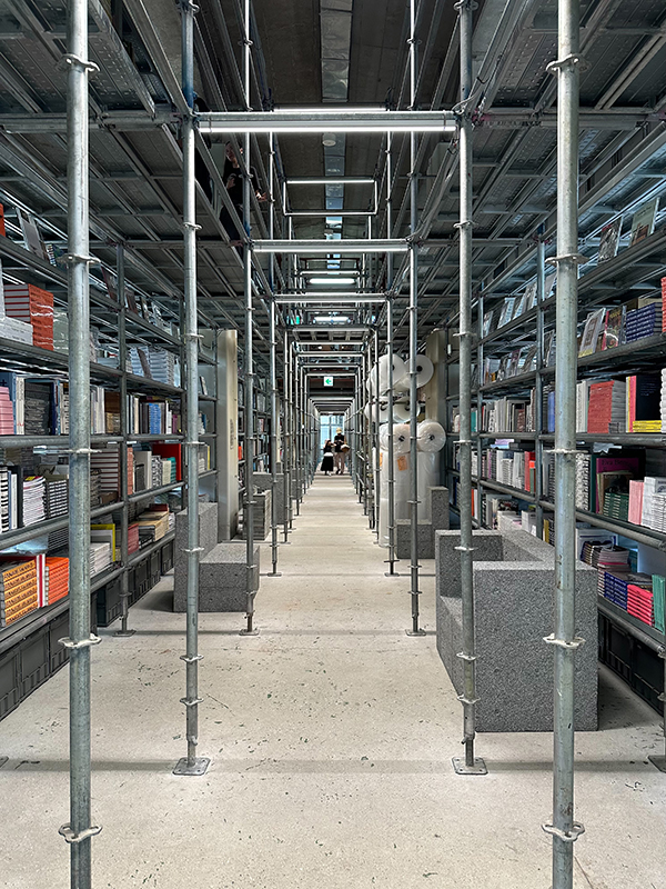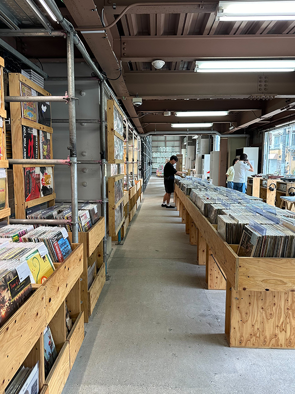 足場や単管が剥き出しになった内装に、国内外から集めたレコードやアートブックが大量に並んでいる姿は圧巻でした。
