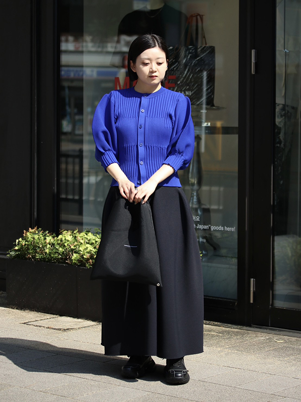 タイトな身頃と、パフスリーブのボリュームのバランスがとても美しいシルエットです。