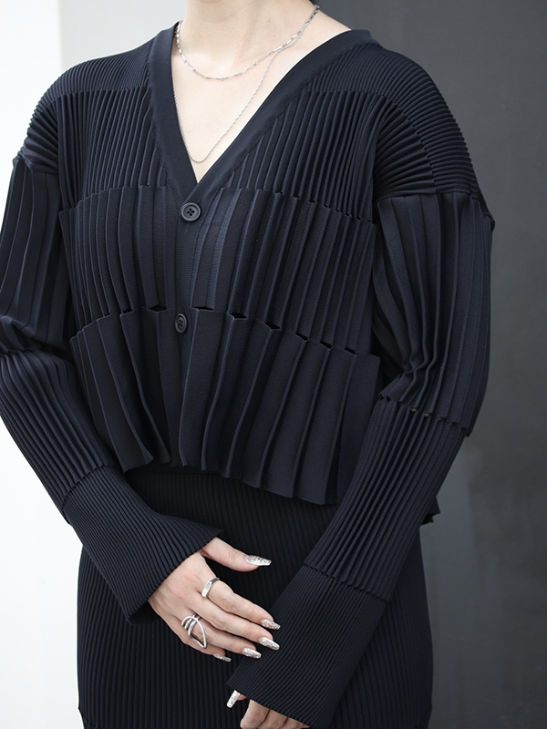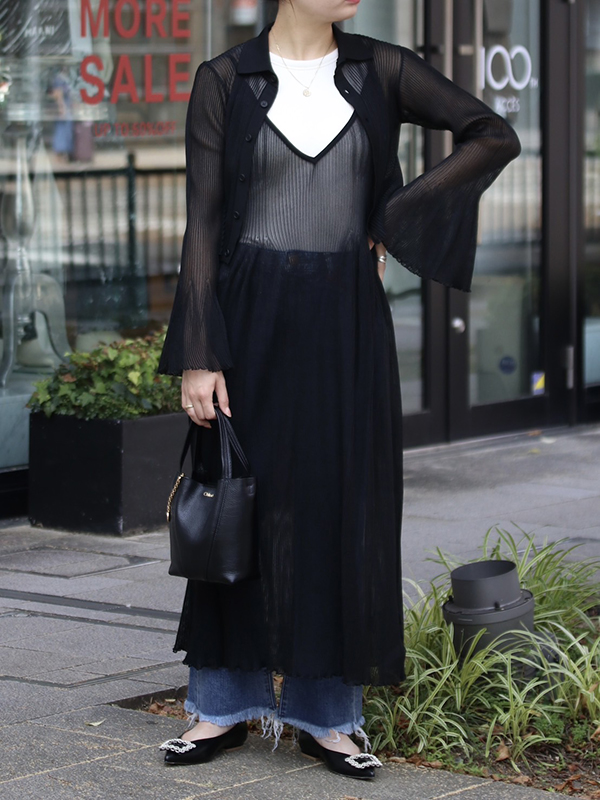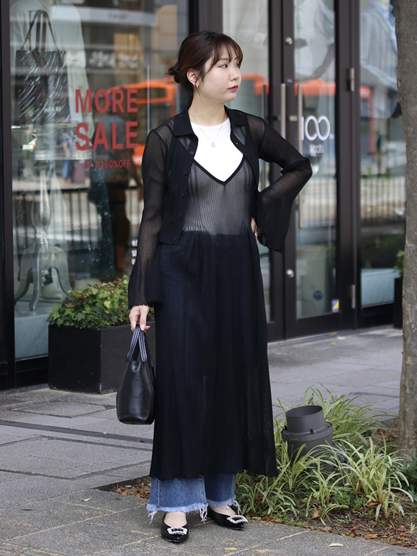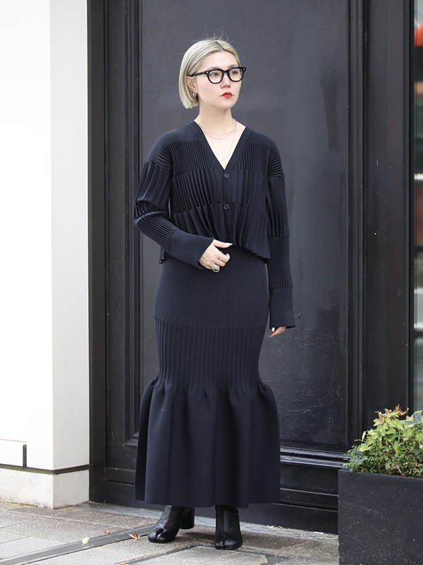 カーディガンやスカートは、同素材のアイテムとセットアップのように着用することで、よりドレス感が出てオケージョンシーンにマッチします♪