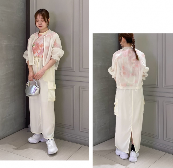 素材感:とても軽量で着やすく、上品な光沢感があります。皺になりにくいなどイージーケアなのが嬉しい♡