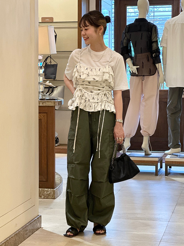 キレイめスタイルはもちろんですがTシャツにスニーカーでコーディネートしてメンズライクなスタイルも楽しんで頂けます。