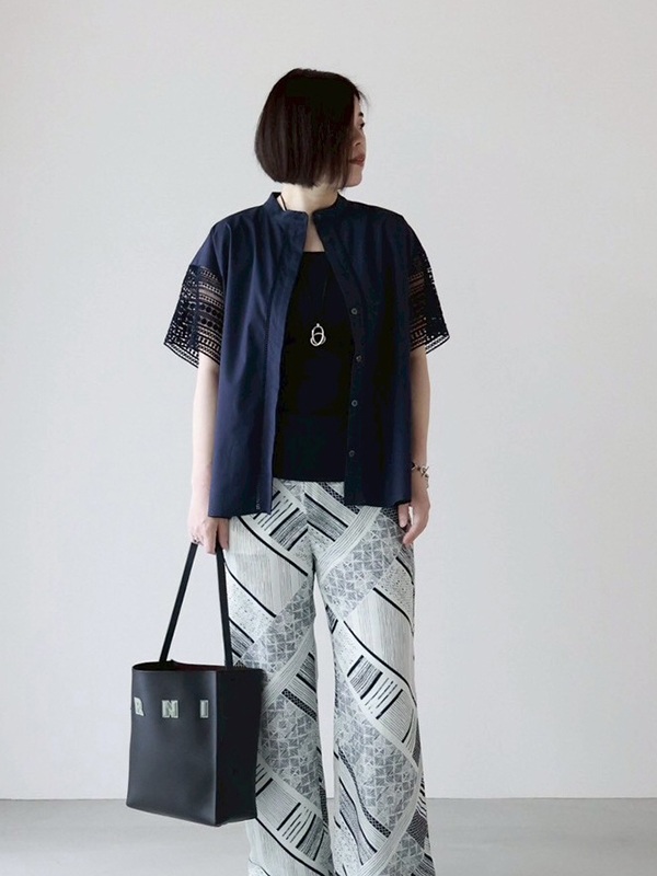 【マイベスト MameKurogouchi(マメクロゴウチ) vol.50】Triacetate Georgette Floral Embroidery Sleeveless Top #25AW