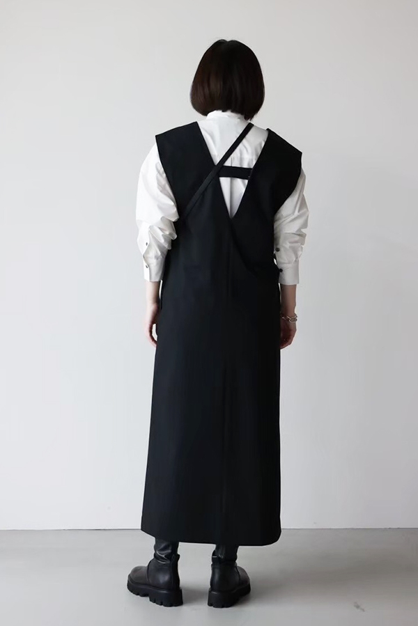 バックスタイルはⅤネックにストラップが付いていて、印象的な雰囲気に。
