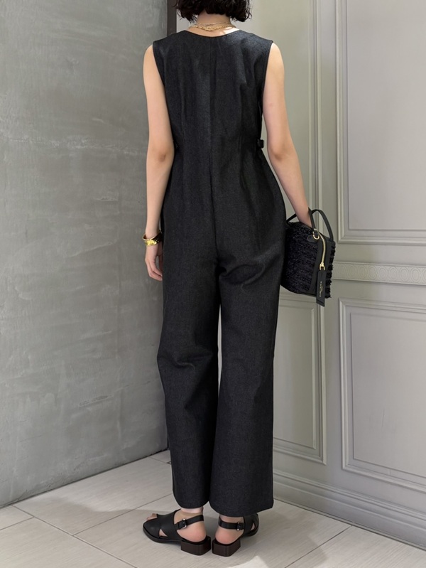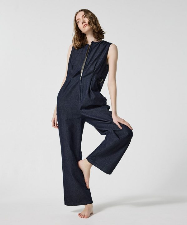 フロントジップとウエストサイドのアジャスターがアクセントになっているサロペット。