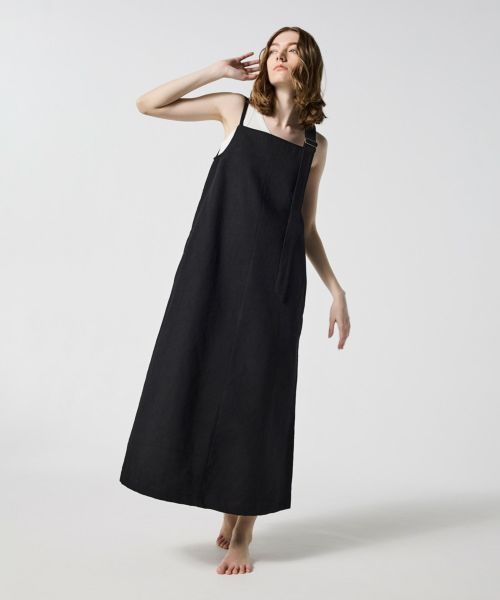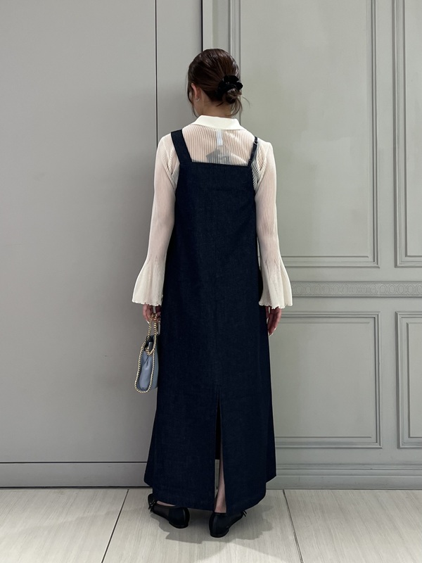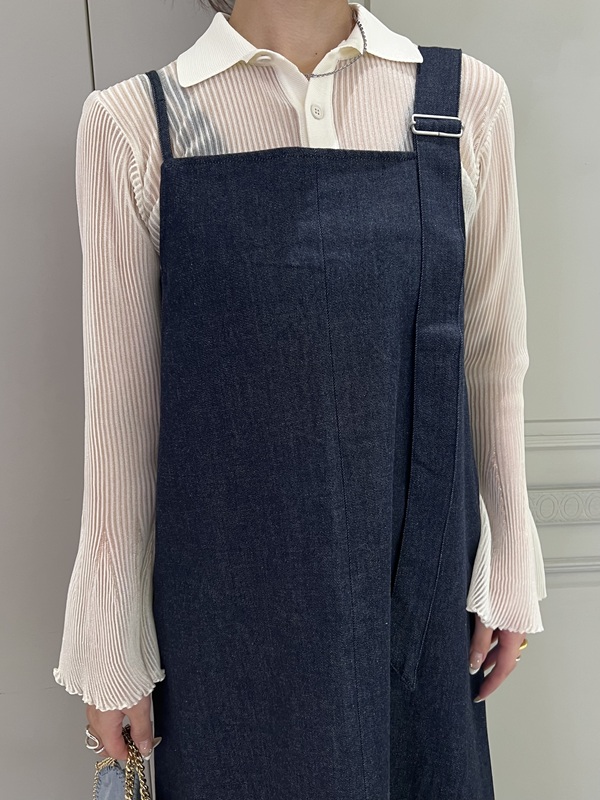 アシンメトリーなデザインのストラップがポイントのデニムワンピース。