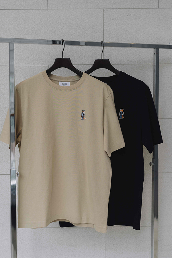 「DRESSED FOX PATCH」のような、ちょっとユーモラスなキツネが胸元に刺繍されたアイテムは、シンプルな服装の中にも程よいアクセントに。