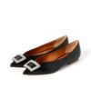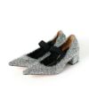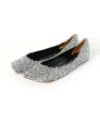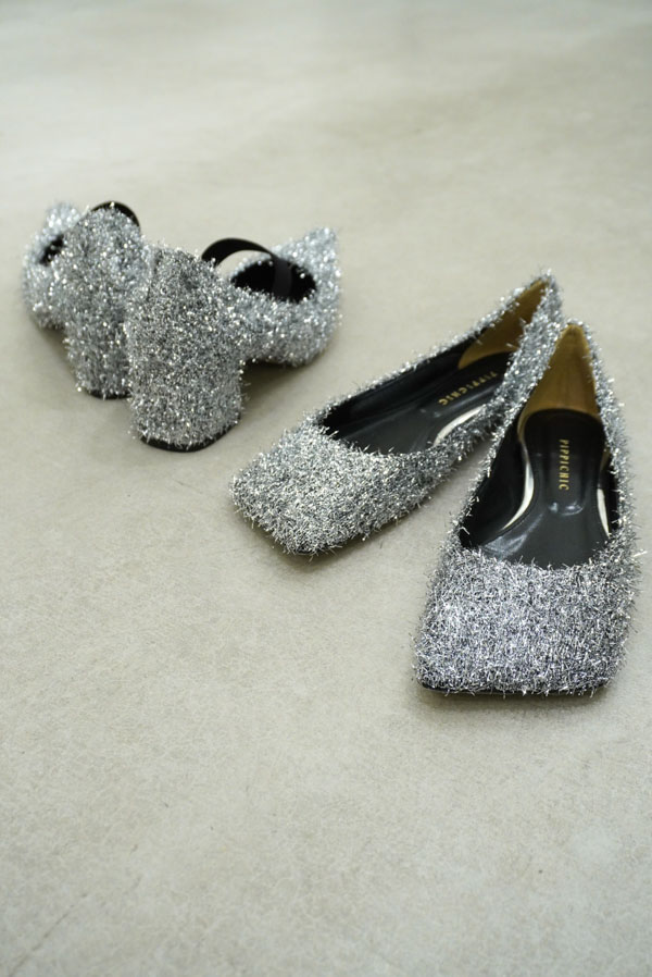 シルバーのシャギー素材が華やかなフラットシューズ。