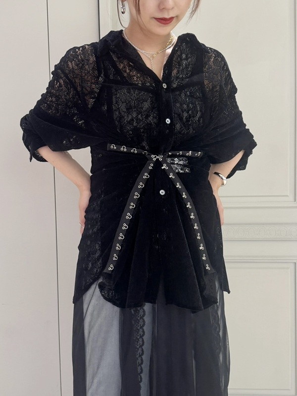 シャツはベルベットのような起毛感のあるレース素材で、ふわっと柔らかい肌触りです。