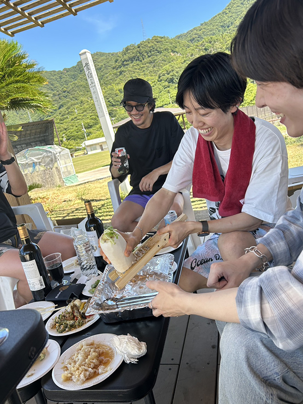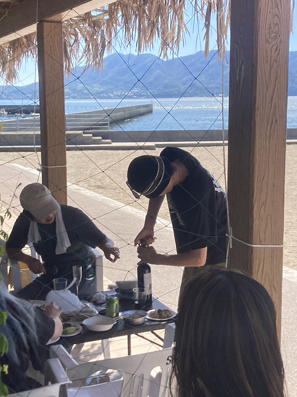 お肉を焼きながらあちこちで会話が弾み、楽しい時間が流れます。途中で海に入ったり、浜辺でのんびりしたりと、それぞれ思い思いに楽しんでいるうちに、あっという間に夕暮れ時に。