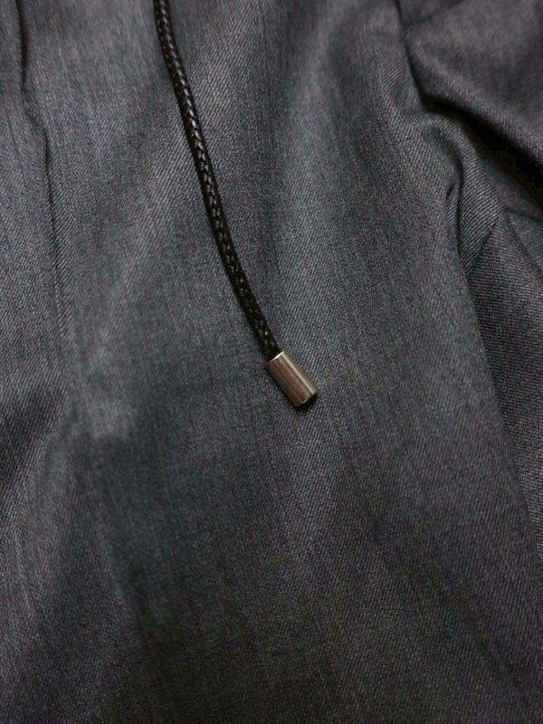 通常のMASACCIO(マサッチョ)では使用しない更に高級な素材を使用し、ドローコードの先端にもゴールドの留め具を使用。