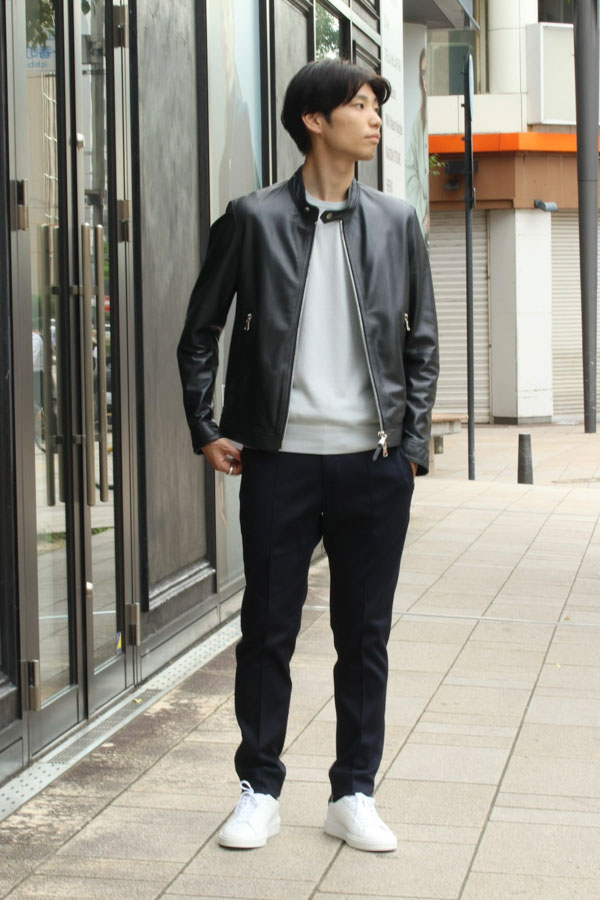 いい意味で漢らしいレザーをクリーンに着こなしてみました。