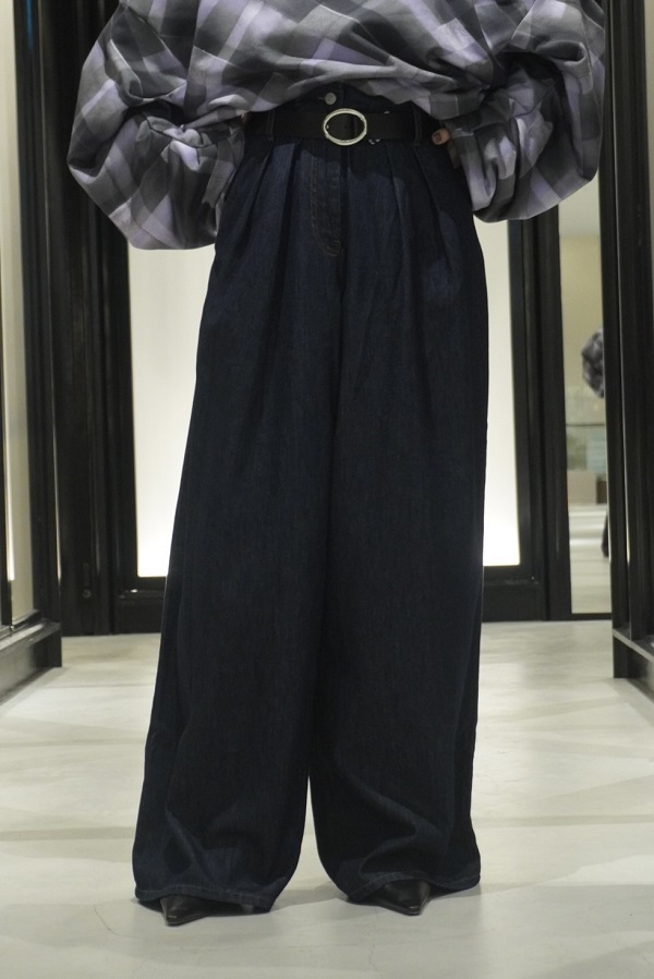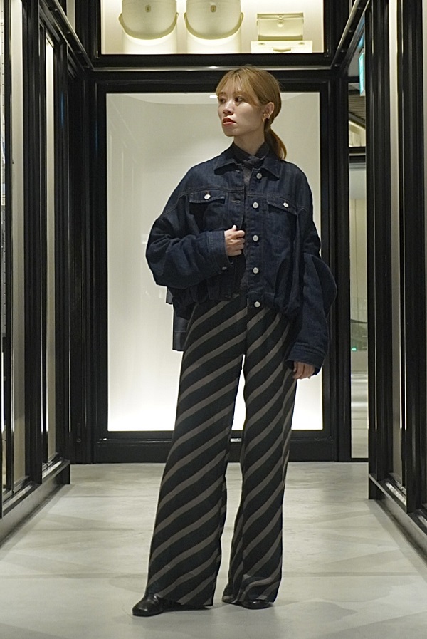プリーツ入りのワイドデニムパンツとルーズに合わせ、モードなハンサムスタイルもオススメです!