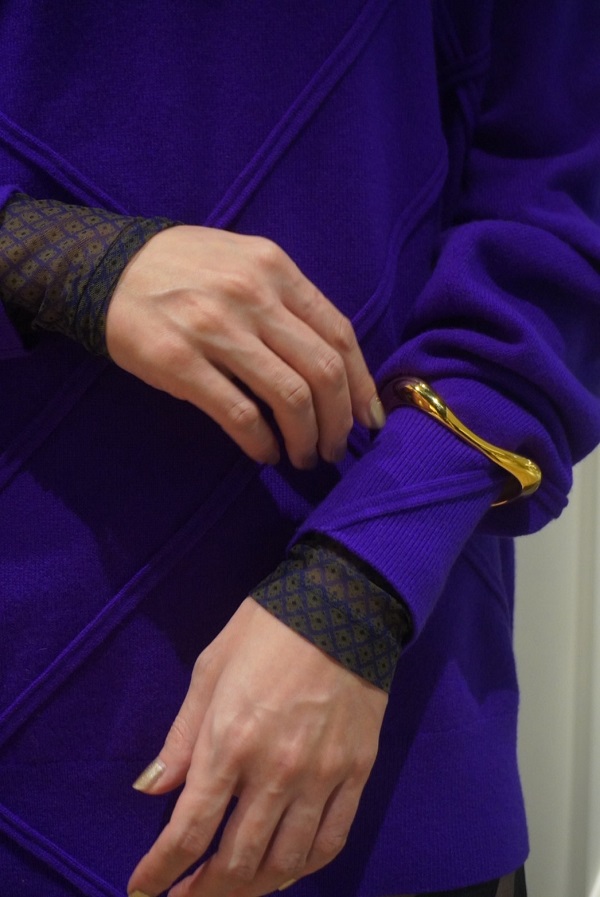 豊かな発色が印象的なニットは、カシミア100%ならではの極上の着心地。