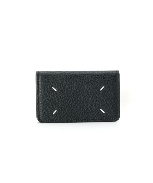 Maison Margiela(メゾンマルジェラ)のエンボス加工を施したグレインカーフスキン製のカードホルダー。マチ付きコンパートメントとカードスロットを備えています。内側にはメゾンのナンバーロゴが付き、バックはメゾンを象徴する4本ステッチがあしらわれています。ブラックのミニマムなデザインで、メンズ、レディース兼用でお使いいただけます。