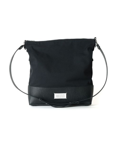 Maison Margiela(メゾンマルジェラ)のバッグ。「5AC」ラインに属するこのホーボーバッグは、グレイニーレザーとコットン素材の絶妙な組み合わせが魅力です。取り外し可能かつ長さ調整可能なショルダーストラップにより、ハンドバッグ、ショルダーバッグ、クロスボディバッグとして複数の使い方が可能です。フロントのロゴラベルとバックの4ステッチがブランドらしさを際立たせ、シンプルながらも洗練されたデザインが日常から特別なシーンまで幅広く活躍します。さらに、底鋲付きでバッグの形を保ちつつ、実用性も高めています。