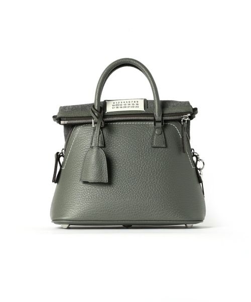 Maison Margiela(メゾンマルジェラ)のバッグ。 アイコニックな「5AC」ミニバッグは、グレイニーカーフレザーを使用した上品でコンパクトなデザインです。トップハンドルに加えて、トーナルカラーの取り外し可能なショルダーストラップが付いており、シーンに合わせた持ち方が可能です。フロントには、ブランドロゴが入ったラベルがアクセントとして配され、シンプルながらも存在感を放ちます。ダブルジップ仕様により、上部を畳んで内側に収納することもでき、スタイリッシュでありながら使い勝手も抜群です。職人技が光るディテールが随所に施された、洗練されたバッグです。