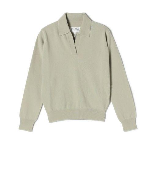 Maison Margiela(メゾンマルジェラ)のニットトップス。ヘリテージ感のあるポロシャツの要素を取り入れた、モダンで洗練されたウールニット。オープンカラーとリブトリムが程よいクラシックさを演出しつつ、リラックスフィットと上質なウールの柔らかな肌触り仕上げが、カジュアルな佇まいに上品さを添え、日常の中で自然体のエレガンスを演出。背面にはおなじみの4ステッチを配し、控えめながら確かな存在感を主張し、存在感を放ちます。