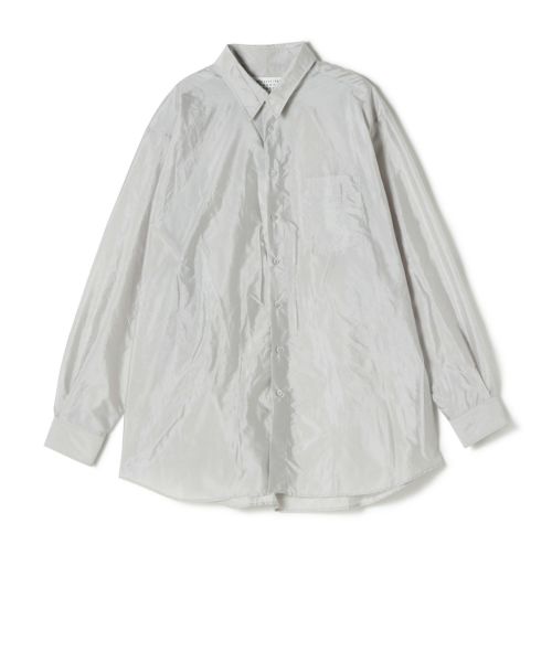 Maison Margiela(メゾンマルジェラ)のシャツ。オーバーサイズのゆったりとしたシルエットがモダンな印象を与える一着。光沢感のある艶やかな生地と「メモリー・オブ・ザ・クリース」テクニック(しわの記憶を表現する加工)によって、表面に現れるかすかな不規則性を生み、着用と動作の痕跡が洗練された“生きたエレガンス”を表現します。バックの4本ステッチがメゾン マルジェラらしいさりげないアイコニックなアクセントとなり、シンプルながら存在感のあるデザインを完成させています。