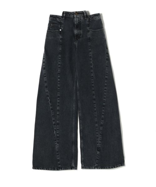 Maison Margiela(メゾンマルジェラ)のデニムパンツ。伝統的なデニムの概念を覆す、彫刻的な構造を持つ「スプライスト」ジーンズ。フロントにカーブを描くシームパネルが、立体的なフォルムと動きを生み出し、構築的な美しさを際立たせます。ハイウエストのワイドレッグがモダンなシルエットを描き、ウエストの大胆なカットアウトがメゾンマルジェラの脱構築的な美学を象徴。機能性とアート性が交差する、現代的なデニムの新たな提案です。