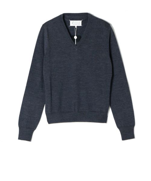 Maison Margiela(メゾンマルジェラ)のニット。落ち着いたカラーに、深すぎないVネックが知的な印象を与える一枚です。シルエットは程よくゆとりがあり、ストレートヘムによってすっきりとしたラインを実現。袖口と裾はリブ仕様で、着用時のフィット感を高めつつシンプルながらも上質な佇まいを演出します。ブランドを象徴するナンバリングラベルがさりげなく存在感を放ち、スタイリングの中で確かな個性を主張。シャツやタートルとのレイヤードにも適しており、オンオフ問わず幅広いコーディネートに活躍します。