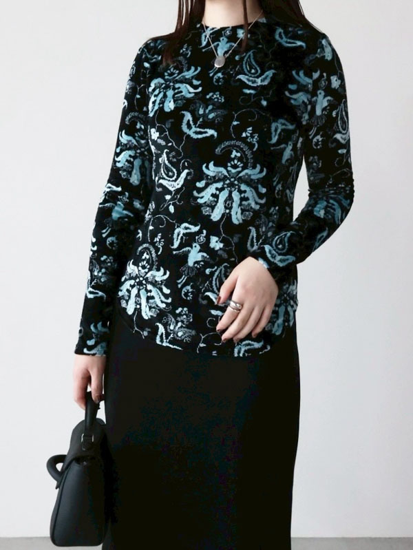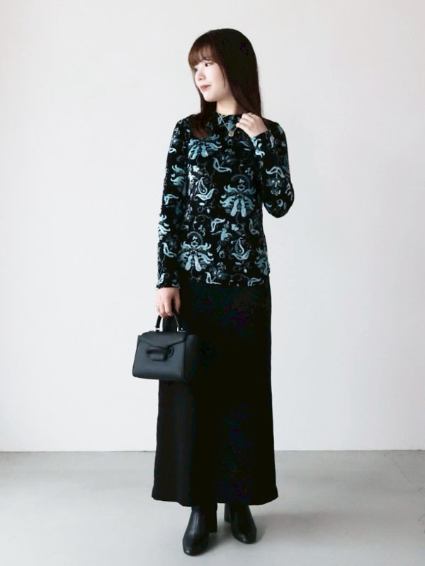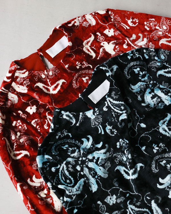 今季流行りのベロア素材で華やかな柄が目を惹きます。