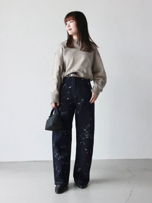 「Nature Pattern Jacquard Wide Leg Jeans」と合わせてカジュアルながら洗練されたコーディネートに。