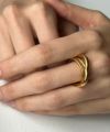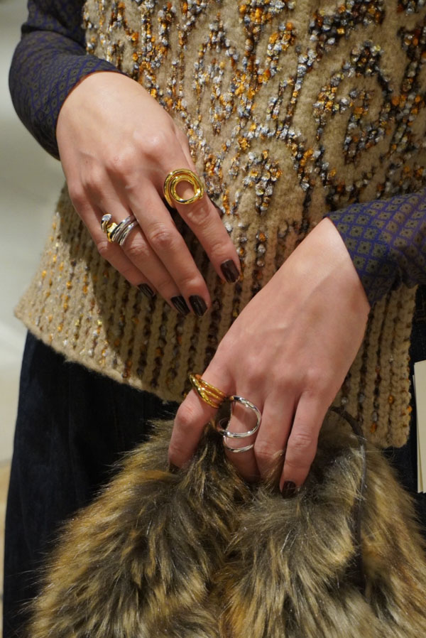 さらに、左右で主役級のリングをアシンメトリーに付けることで、ボリュームのあるリングを複数付けてもバランス良い印象になります。