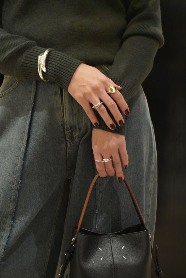 モードカジュアルなデニムスタイリングには、きりっとシルバーを差しました。