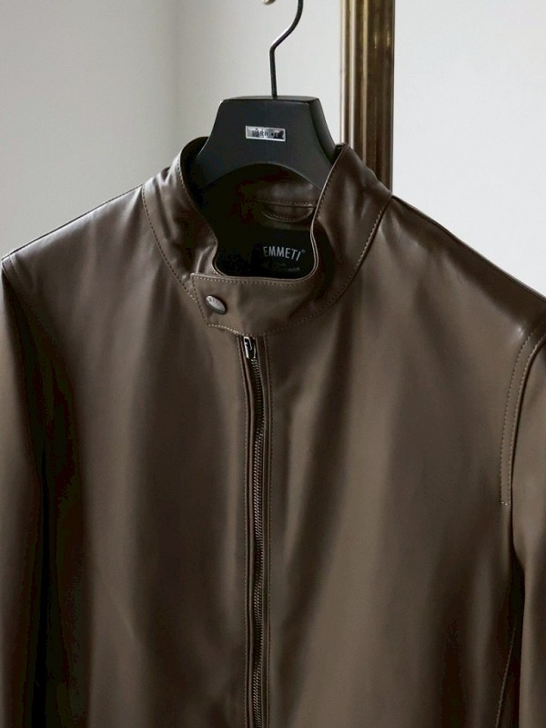 エンメティのレザージャケットは、ややタイトめなフィット感で知られています。